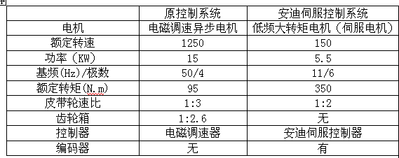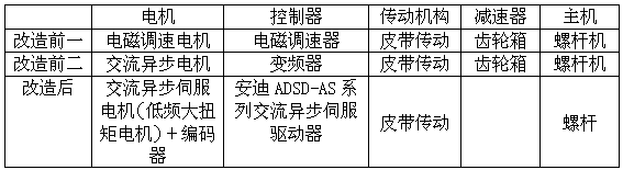 螺桿改造前的螺桿機采用傳統的電磁調速電機加電磁調速器或交流異步電機加編碼器,為了滿足螺桿機的低速(最高150轉左右)轉矩要求,必須加大電機容量配備減速箱。改造后,由于交流伺服系統的優良特性低頻轉矩性能大大提高,減小了電機容量、取消了原有機構中的減速箱(或減小了減速箱的速比),螺桿機的系統結構得到簡化、性能得到提到,從而使設備生產廠家及設備使用取得一定的經濟效益。