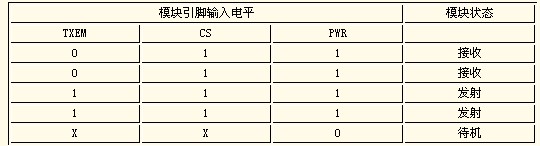 TXEN:發射接收控制端,TXEN為1時,模塊為發射狀態;TXEN為0時,模塊為接收狀態。