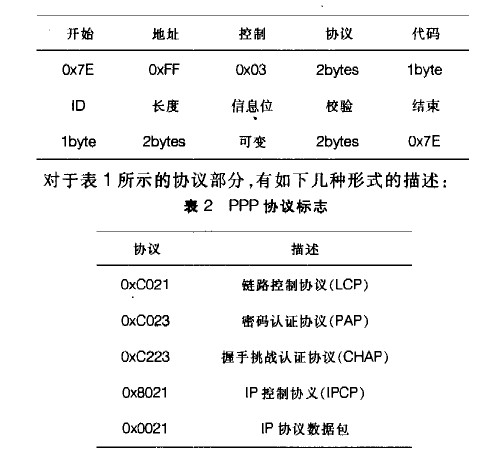 以上3個表所示的內容是分析PPP協議各種類型數據包的基本概念。在解析PPP數據包中需要注意的另外一個事項是,如果字符中包括了Ox7D,則表示該字符后面的字符需要轉義。轉義方式是后一個字符與0x20進行異或運算得出的16進制數據作為真是數據比如一個數據包包括了......Ox7D0x23......,則真實表示的為Ox03a(為方便表示下文所示數據均為轉義后的數據)