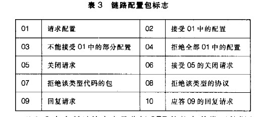 對于表1所示的信息位包括了鏈路配置包標志,描述如下: