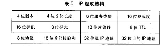 IP包的組成形式如表5所示,其中8位協議處可選擇TCP方式或UDP方式,8位TTL為TimeToLive,只數據包在網絡中的存活時間。