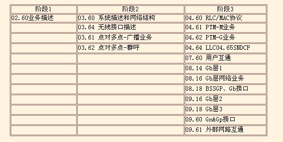 表1-3 GPRS的標準的3個階段