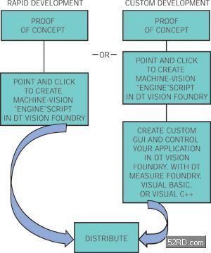 上述列表由于很具體,所以可能意味著你可以利用菜單驅動的基于圖形的開發工具來創建機器視覺設備,而不是使用如C++這樣的基于文本的語言來編寫代碼。盡管具有長期用基于文本的語言對機器視覺設備進行編程的開發者通常更愿意堅持使用他們多年來成功運用的工具,但你的確可以使用多種菜單驅動的圖形化應用開發軟件包之一。雖然業界中的一些人對這種不愿改變的傾向頗有微詞,但要問一問自己,如果你聘請來處理某種設備的咨詢專家第一次嘗試使用新軟件包來完成你的工作的話,你的感受如何呢?