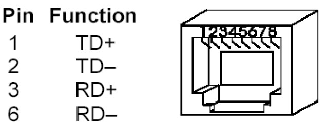 雙絞線接頭中 RJ-45 較常見,共兩對線,一對用于發送,另一對用于接收。在媒介相關 接口(MDI)的定義中,這四個信號分別標識為 RD+,RD-,TD+,TD-。