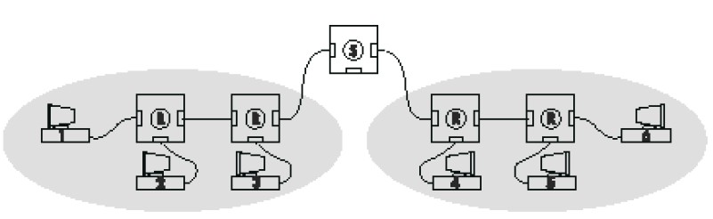 如果某個端口收到的信息需廣播發送、群組發送或發送地址不詳,交換機會自動把信息發至所有端口。 與中繼型集線器不同,這兒有多個碰撞域存在,每個碰撞域必須遵守上述的規則。