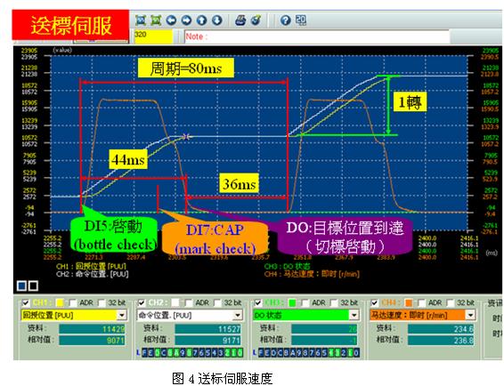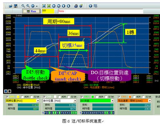 (2)由于高速的要求,至少0.1s就要完成一次套標動作,要求下標與切標電機必須頻繁起停,定位精準。