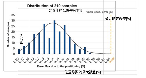 210件RT傳感器樣品的最大位置誤差分布圖