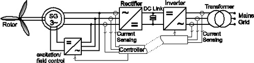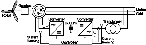 現在大多數的風力渦輪機都使用一種經過修正的“丹麥概念”,在這種概念中,一臺雙饋異步機器作為發電機。