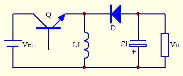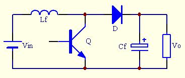 Q導通時為電感Lf儲能階段,此時電源不向負載提供能量,負載靠儲于電容Cf的能量維持工作;Q關斷時,電源和電感共同向負載供電,此時還給電容Cf充電。變換器必須接負載,不然會因能量不斷送到負載端而使Vo不斷升高而損壞。