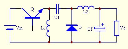 Cuk變換器中,電源能量經過3次變換才到負載。第一次是Q導通,電感L1儲能增長,電能轉換為磁儲能;第二次是Q截止,L1的磁能轉移為C1的電能存儲著;第三次是Q導通,C1的電能轉移到負載和輸出回路的電感L2和電容Cf。實際上,第一、三次兩個轉換是同時進行的。