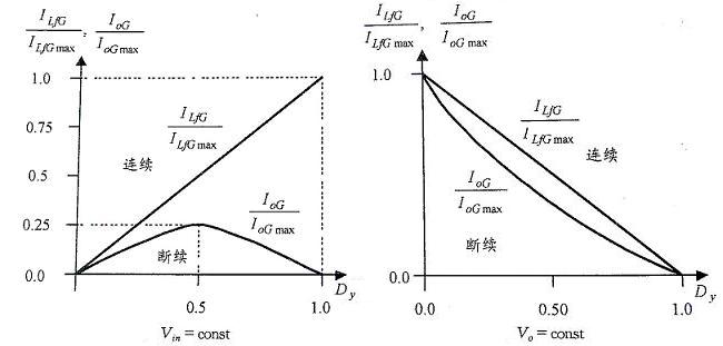 由圖可見,在Vo=const時,如果Dy<0.5,即Vo<Vin,變換器很容易進入電感電流斷續區。