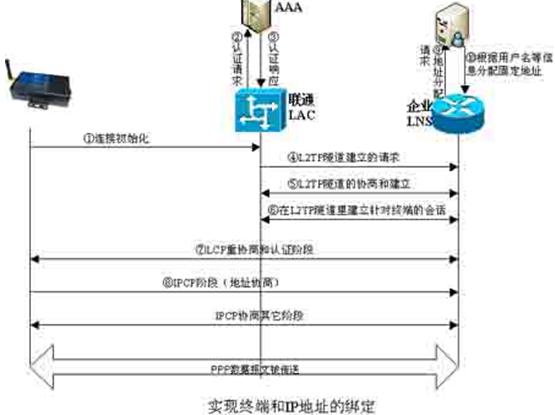 根據L2TP信令流程,在終端通過認證后將進行IPCP的協商。我們控制了IPCP協商階段,使其能針對終端分配不同固定IP地址,其原理圖如下: