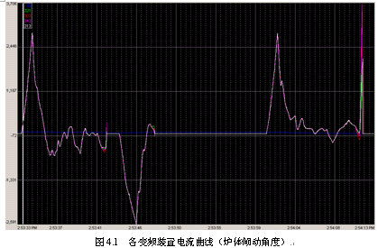 1 引言 近年來,國內自主建設了相當數量的中大型轉爐(80t~150t級)。基于轉爐傾動裝置的工藝特點(頻繁地啟動、制動和加減速)、氧槍的工藝要求(快速自由升降、較高的定位精度),考慮到交流電動機自身的優點、電力電子/微電子技術的發展、現代控制理論的應用日趨成熟,交流變頻技術在這些中大型轉爐上得到了更多的應用。甘肅某鋼鐵公司新建的三座120 t轉爐就采用了交流變頻技術。 2 控制系統的組成 本系統采用Rockwell公司的ControlLogix 1756-L55控制器(以下簡稱CLXD)作為控制主站。一方面,CLXD通過ControlNet與轉爐本體控制器(以下簡稱CLXM)實現數據交換,CLXM發出設備起停的控制指令、給定速度,CLXD實時反饋變頻裝置的具體參數、報警信息在HMI上顯示。另一方面,CLXD下掛六臺1336 Force變頻裝置,通過控制網ControlNet控制每一臺裝置的運行。將傾動氧槍變頻裝置的控制與轉爐本體其余設備的控制分開,編程、調試、維護、查找故障都較為方便。四臺傾動電機的變頻裝置通過D2D通訊實現裝置之間的數據交換。系統的網絡結構見圖2.1。 轉爐的容量為120t,采用全懸掛式的四點嚙合的結構形式,由4臺交流變頻電機拖動。每臺電機都由一臺1336 Force變頻裝置供電,四臺變頻器拖動四臺電機在轉爐傾動時均衡分擔負載。考慮到檢修的方便,每臺變頻裝置的出線側均設置了輸出接觸器用于形成電氣回路上的可靠斷點。兩套氧槍卷揚電機各設置一套1336 Force變頻裝置。為達到一定的控制精度要求、提高低速時的動態響應性能,每臺電機上均設置了一個增量型速度編碼器。作為速度反饋值,該信號直接進入變頻裝置。 在生產過程中,如果傾動電機或是變頻裝置發生故障,為保持生產的連續性,電機容量及變頻裝置容量的選擇已能滿足三臺電機生產時能保證一個班次的正常生產、兩臺電機生產時能維持一個爐次的正常生產的情況。如果氧槍電機或變頻裝置在該氧槍處于工作狀態時出現故障,通過設置兩組機械互鎖的接觸器實現兩套變頻裝置與兩臺電機之間的任意組合,實現該爐次的正常吹煉。由于1336 Force是一種高性能的矢量變頻裝置,在無速度反饋時仍具有較好的控制精度(1%),變頻裝置在切換時采用開環控制。這樣,既避免了易受干擾的編碼器信號的復雜切換,又保證了可以接受的控制精度。單線系統圖見圖2.2。 3 控制系統的功能 由于轉爐的四臺電機屬于剛性連接、機械速度一致,這樣就要求控制電機的變頻裝置輸出轉矩應大體一致(各電機的負荷差異<10%)。為滿足負荷平衡的要求,本系統采用主從控制的傳動控制系統。四臺電機中任選一臺做為主裝置,主裝置接收CLXM發出的控制指令、速度要求,采用速度控制模式,該電機的編碼器反饋用于閉環控制。其余三臺變頻裝置均為從裝置,采用轉矩控制模式,從裝置的編碼器反饋用于速度限幅。通過Drive to Drive 通訊,裝置之間得以實現最快2mS、最大500k/S的數據通訊。主裝置采用速度控制,使得電機的速度能夠動態跟隨;從裝置采用轉矩控制,使得四臺電機的出力保持平衡。 基于安全控制的考慮,轉爐在運行過程中如果主變頻裝置或是主電機出現故障,從裝置立即會因通訊故障而停機。操作人員進行故障確認后,可以通過人工選擇主變頻裝置或是控制系統自動重新選擇主裝置來實現繼續生產。這樣既保證了設備的安全運行又不會影響正常的生產。 傾動裝置與氧槍均是位能負載。轉爐回垂直位或是氧槍下放時,電動機均工作在發電狀態,多余的能量必須釋放。本系統通過配備制動單元和制動電阻實現能量的自動釋放,以保證變頻裝置的直流母線電壓維持在正常的范圍。根據制動電阻阻值的計算以及對負載的分析,傾動電機及氧槍電機處于制動狀態的時間較長。從安全的角度考慮,制動單元及制動電阻均選擇了兩套。 國內的中大型轉爐一般采用正負力矩進行力矩設計。從力矩分析及生產的情況來看,轉爐在測溫取樣區域可能出現負力矩(見參考文獻[3])。因此必須要求電機的制動器在電機輸出足夠的轉矩后才允許打開,使爐體不至于產生回位動作和抖動。CLXM發出啟動指令后,制動器不能立即打開。CLXD在判斷變頻裝置的輸出轉矩達到一定數值時再打開制動器,爐體就能夠比較平穩的啟動。CLXM發出停止指令后,CLXD在判斷變頻裝置的輸出轉矩降至一定數值時再關閉制動器,就避免了變頻裝置電流過大或是機械抖動較大的情形。由于制動器打開前變頻裝置輸出的轉矩值取決于給定速度值,在轉爐的低速傾動區就必須采用快速勵磁方式使得輸出轉矩盡可能快地達到要求,以避免低速區響應時間較長的情況。 4 控制效果 響應時間短、超調量小,是對控制系統的基本要求。由于轉爐的四臺變頻裝置采用主從控制,那么主裝置的參數整定對整個系統的動態性能有著較大的影響。如果主變頻裝置的響應時間較長,由于爐體傾動的特點(兌鐵或出鋼時需斷續得電),可能系統會出現無法跟隨給定的狀態;如果主變頻裝置的超調量較大,那么從裝置驅動的電機將反復振蕩。因此,變頻裝置的Ki、Kp、Kf參數需反復調整。圖4.1為經過參數調整后以4#變頻裝置為主裝置、現場裝料操作(兌鐵、加廢鋼)結束后爐體回到垂直位過程的四臺電機的電流曲線。圖中左上方顏色圖例的含義依次為:爐體傾動角度、1#變頻裝置的輸出電流(4096對應著電機的額定電流)、2#變頻裝置的