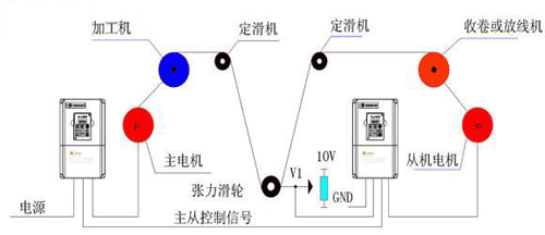 拉絲機(jī)變頻控制系統(tǒng)目前用的最多的是雙變頻系統(tǒng),其中一臺(tái)作為主拉,另一臺(tái)作收線控制;小(細(xì))拉機(jī)目前還有單變頻控制系統(tǒng)。 1 系統(tǒng)配置:主拉為37kW,收線采用11kW。