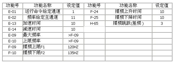 一.引言 隨著新世紀(jì)的到來(lái),中國(guó)每年新增近1000萬(wàn)錠紡紗生產(chǎn)能力,現(xiàn)已具備6000多萬(wàn)錠短纖紡紗能力和400多萬(wàn)錠長(zhǎng)纖紡紗能力,擁有10萬(wàn)多家紡織服裝生產(chǎn)企業(yè),是世界最大的紡織國(guó)。近年來(lái)每年生產(chǎn)約2萬(wàn)臺(tái)細(xì)紗機(jī),5000臺(tái)粗紗機(jī),10萬(wàn)臺(tái)織布機(jī)以及與之相應(yīng)的各種配套設(shè)備?梢(jiàn),中國(guó)也是一個(gè)紡織機(jī)械生產(chǎn)大國(guó),在新世紀(jì)中,中國(guó)將要從紡織大國(guó)發(fā)展為紡織強(qiáng)國(guó)。作為紡織工業(yè)技術(shù)裝備基礎(chǔ)的紡織機(jī)械將呈現(xiàn)質(zhì)的變化,從紡織大國(guó)發(fā)展為紡機(jī)強(qiáng)國(guó),必將大力開(kāi)發(fā)高效、節(jié)能、環(huán)保、高水平自動(dòng)化技術(shù)的紡織機(jī)械產(chǎn)品,這是一項(xiàng)較長(zhǎng)期而艱巨的任務(wù),為實(shí)現(xiàn)這一宏偉目標(biāo) 提升紡織機(jī)械自動(dòng)化技術(shù)水平是最主要的關(guān)鍵技術(shù)之一。中國(guó)紡機(jī)生產(chǎn)面臨著更加激烈的競(jìng)爭(zhēng),促使紡機(jī)和紡機(jī)自動(dòng)化技術(shù)發(fā)展呈現(xiàn)新的特點(diǎn),例如變頻調(diào)速技術(shù)、運(yùn)動(dòng)控制技術(shù)、可編程控制技術(shù)、網(wǎng)絡(luò)技術(shù)等,已在紡機(jī)上推廣應(yīng)用,F(xiàn)主要介紹紡織機(jī)械對(duì)變頻調(diào)速技術(shù)的應(yīng)用特點(diǎn)。(主要征對(duì)三角波調(diào)速作闡述) 二 .三角波調(diào)速 為了滿足紗線卷繞成型好無(wú)疊線和塌邊等的要求,紡絲卷繞頭由摩擦輥、槽筒橫動(dòng)裝置和筒管夾頭等組成,而槽筒橫動(dòng)裝置電機(jī)調(diào)速必須按圖2所示的三角波規(guī)律進(jìn)行調(diào)節(jié),該 圖是以變頻器輸出頻率進(jìn)行標(biāo)注的,此種調(diào)速規(guī)律通常是由變頻器內(nèi)置擺頻功能來(lái)調(diào)節(jié)輸出頻率來(lái)實(shí)現(xiàn)的。 圖1中:f1—三角波上限頻率 f2—三角波下限頻率 T2—三角波下降時(shí)間 T1—三角波上升時(shí)間 —跳躍頻率(差頻) 由圖1可見(jiàn),當(dāng)變頻器驅(qū)動(dòng)橫動(dòng)電機(jī)達(dá)到上限頻率f1或下限頻率f2時(shí),頻率應(yīng)突變,下降為 或上升 ,突變頻率幅值 一般為基本頻率 F1 的1%左右,突變頻率的時(shí)間,理論上要求是0,但實(shí)際上,由于橫動(dòng)裝置和電機(jī)有慣性,使得電機(jī)速度不可能突變而有一過(guò)渡時(shí)間,過(guò)渡時(shí)間通常在0.1S以上 三 參數(shù)設(shè)定
