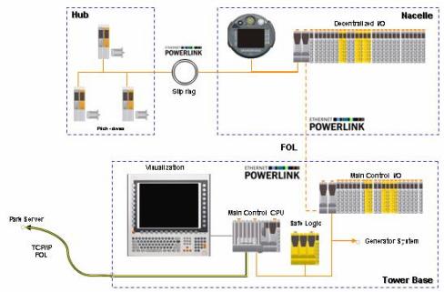 ● 支持滑環(huán)的POWERLINK:由于變槳伺服系統(tǒng)的安裝是位于HUB里的,那么必然造成