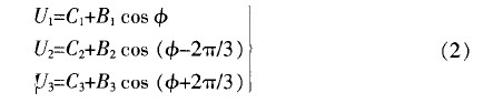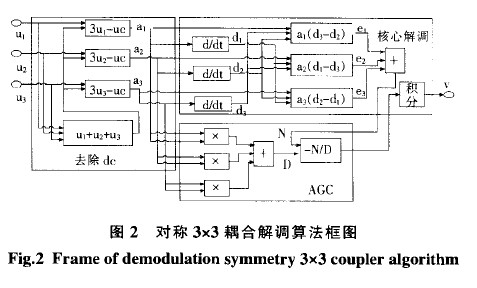 在3x3耦合對稱情況下,從干涉儀輸出的3路電流信號,經I,v變換電路和放大電路后的輸出為: