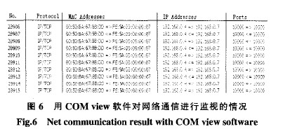 圖6所示為網絡數據包的傳輸情況.其中PC機的IP地址設置為192.168.0.4,本設計系統的IP地址設置為192.168.0.7,端口號為10000.實驗證明所設計的嵌入式信號處理系統可以實現基于TCP/IP的網絡通信.