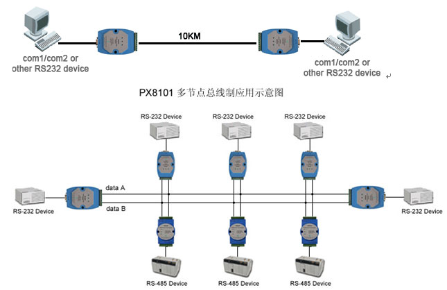 1:解決方案簡介: 串行通信接口標準經過使用和發展,目前已經有幾種。但都是在RS-232標準的基礎上經過改進而形成的。所以,以RS-232C為主來討論。RS-323C標準是美國EIA(電子工業聯合會)與BELL等公司一起開發的1969年公布的通信協議。它適合于數據傳輸速率在0~20000b/s范圍內的通信。這個標準對串行通信接口的有關問題,如信號線功能、電器特性都作了明確規定。由于通行設備廠商都生產與RS-232C制式兼容的通信設備,因此,它作為一種標準,目前已在微機通信接口中廣泛采用。 在AT機及以后,不支持20mA電流環接口,使用DB-9連接器,作為提供多功能I/O卡或主板上COM1和COM2兩個串行接口的連接器。它只提供異步通信的9個信號。DB-25型連接器的引腳分配與DB-25型引腳信號完全不同。因此,若與配接DB-25型連接器的DCE設備連接,必須使用專門的電纜線。 電纜長度:在通信速率低于20kb/s時,RS-232C所直接連接的最大物理距離為15m(50英尺)。最大直接傳輸距離說明:RS-232C標準規定,若不使用MODEM,在碼元畸變小于4%的情況下,DTE和DCE之間最大傳輸距離為15m(50英尺)。可見這個最大的距離是在碼元畸變小于4%的前提下給出的。為了保證碼元畸變小于4%的要求,接口標準在電氣特性中規定,驅動器的負載電容應小于2500pF。 由于RS-232規范出現的時間比較早,盡管這種標準現在仍然普遍應用在工業自動化、安放監控、數據采集、等等諸多的領域,但它先天的缺陷卻也非常明顯,那就是它的電氣標準的限制,導致RS-232信號不能進行長距離的通訊,另外一個缺陷就是RS-232接口很容易因為浪涌、回路電壓等因素,僅僅10幾伏的電壓波動,就可能導致接口芯片的損壞。基于這個現狀,國內外很多公司都開發出RS-232的光電隔離長線驅動器,這種產品能滿足RS-232在1000米左右的信號全雙工點對點(Point to Point)通訊,而且兩端互相光電隔離。 但是這種方案還有不完美之處,那就是以雙絞線作為通訊線纜介質條件下,無法完成更遠距離的通訊,更遠距離的通訊,只能靠昂貴的光纖通訊來解決這個需要,但這個方案明顯存在著布線昂貴,接口設備通常價格也比較高的問題。 我公司根據客戶的需求,現在提供了一個RS-232在以雙絞線作為通訊介質,半雙工通訊、低速率模式下,可以將RS-232信號傳送10公里以內的解決方案,產品名稱為RS-232 Short Haul Modem.此方案不僅可以解決RS-232點對點通訊,而且還可以組成帶有節點的總線制結構,此種通訊方式和通常的RS-485總線類似,在網絡中每個掛有RS-232 Short Haul Modem的RS-232接口設備,甚至于掛接我公司生產的RS-485 Short Haul Modem的RS-485設備,均可與上位主控計算機以輪詢的方式通訊。 為保證網絡的安全性,我公司提供的RS-232 Short Haul Modem為工業級標準設計,不僅僅是信號的光電隔離,而且電源也是DC-DC隔離轉換,并帶有抗雷擊元器件用以做突波保護。我公司所生產的RS-232 Short Haul Modem 和RS-485 Short Haul Modem, 其核心原理就是將RS-232或是RS-485電平轉換成為CAN(Controller Area Network)總線電平,遠端的RS-232 Short Haul Modem 和RS-485 Short Haul Modem,再由CAN電平轉換成為RS-232電平或RS-485電平,從而完成了RS-232或是RS-485信號的超遠距離傳輸。因為眾所周知,CAN總線具有突出的可靠性、實時性和靈活性。CAN總線通過CAN控制器接口芯片82C250的兩個輸出端CANH和CANL與物理總線相連,而CANH端的狀態只能是高電平或懸浮狀態,CANL端只能是低電平或懸浮狀態。這就保證不會出現象在RS-485網絡中,當系統有錯誤,出現多節點同時向總線發送數據時,導致總線呈現短路,從而損壞某些節點的現象。而且CAN節點在錯誤嚴重的情況下具有自動關閉輸出功能,以使總線上其他節點的操作不受影響,從而保證不會出現象在網絡中,因個別節點出現問題,使得總線處于“死鎖”狀態。所以采用這種方式來解決RS-232/485超遠距離的通訊,不失為一種穩定、可靠而且經濟的解決方案。 在RS-232超遠程的解決方案中,由于其產品性能的穩定可靠,已大量被國內軍工單位所采用,在實際應用中表現出色。 ______________________________________________ -------------------------------- 濟南普訊科技有限責任公司 銷售部: 李民 電話:0531-846424518 86652206 傳真:0531-86424519 電郵:limin@pxtech.cn 網站www.pxtech.cn