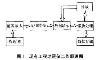 工程地震儀應用于地基、路基與基礎工程檢測;隧道工程檢測;大中型水庫的運行觀測;橋梁工程檢測;環境與地質災害檢測與評價等工程領域的地震檢測任務l2 。一般來講工程地震儀器利用錘擊、電火花或爆炸等作為激發震源,硬件上由前置放大器,數據采集卡,A/D轉換器,工控機(便攜式微機)等部分組成。而數據采集,數據處理,分析軟件都存儲在工控機內,可以隨時處理現場所采集的原始數據,發現問題及時處理。其功能一般有:瞬態多點端雷波勘探淺層反射測量淺層折射測量波速(剪切波)測量多波高密度地震映像樁基檢測土建工程質量檢測場地常時微動測量震動爆破測量。如圖1 所示