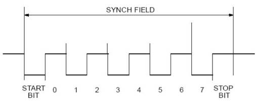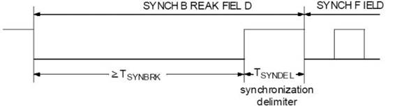 同步間隔場由兩部分組成,第一部分是一個至少持續TSYNBRK時間的顯性總線電平,第二部分是最少持續TSYNBRK的隱性電平,作為同步界定符號,同時可以允許用來檢測下一個同步場(SYNCH FIELD)的起始位。