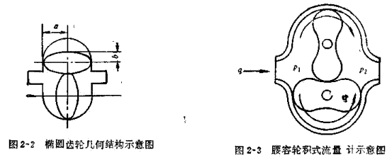 圖2—1中示出是橢圓齒輪型容積流量計(也稱奧巴爾容積流量計)的示意圖