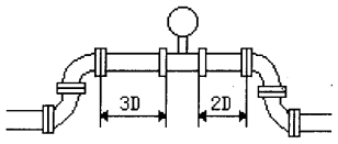 縱端面采用特殊形線的變徑整流器(己申報國家專利),具有整流,提高流速及改變流速分布的多重作用,其結構尺寸小,長度僅為工藝管內徑的1/3,可以直接卡裝在儀表的兩端,不僅不需要另外附加直管道,而且可以降低儀表對上游直管道的要求。實驗表明:儀表上游阻力件為一個平面內的兩個90°彎頭 在一般情況下,渦街流量計上游側應加裝大于20倍管道內徑長度的直管道,而渦街流量計加裝了變徑整流器大大降低了對上游測直管道長度的要求,其阻力遠遠小于傳統的變徑管。更主要的是,可使下限流速降為原來的1/3,量程比提高到15:1以上。 ’