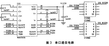 由于省略了 Modem通訊握手的相關信號 ,使得采用 1TTL/RS232的電平轉換芯片 MAX3232實現兩個串口的接口成為可能 ,并在實際的使用中得到了驗證。