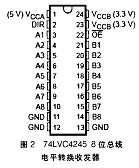 本模塊開發的關鍵之一是 PC/104總線的接口,包括控制總線 、地址總線和數據總線 ,采用專用的 3 3V/5V電平轉換芯片74LVC4245以保證不同電平電路的高速互連 ,74LVC4245是一塊A3 8位的總線收發器 ,并可以在5V和3.3V系統之間實現電平的轉換 。