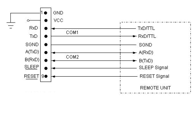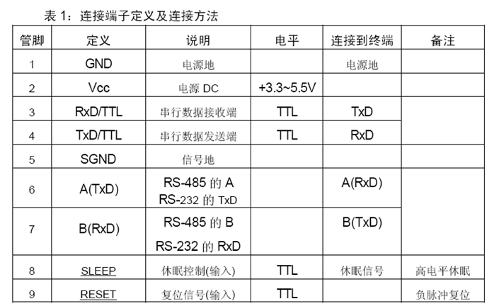 速率:1200bts/s = 1200位/秒 =120byts/秒 漢字一般由2個字節組成 如:一 注:通訊速率越慢,靈敏度越高 八)調制方式 1,FSK:頻移鍵控 2,GFSK:帶高斯濾波器的頻移鍵控 九)功率分:10mw,100mw,500mw,5w 十)通信距離:與功率成正比 功率越大通信距離越遠 十一)靈敏度:從接收信號里提出有用信號的能力. 靈敏度越高傳輸距離越遠 十二)模塊的接口定義如下圖: