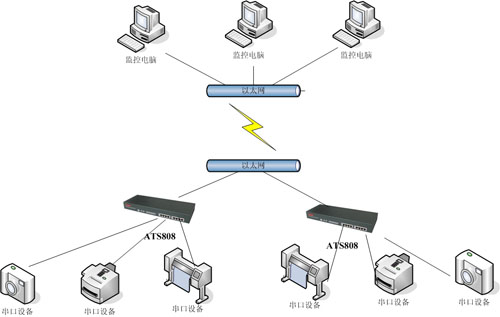 在傳統(tǒng)的集中監(jiān)控系統(tǒng)中,一般通過(guò)Modem或E1等進(jìn)行數(shù)據(jù)傳輸,隨著網(wǎng)絡(luò)技術(shù)的發(fā)展和網(wǎng)絡(luò)在各行各業(yè)的普及,通過(guò)網(wǎng)絡(luò)進(jìn)行遠(yuǎn)程監(jiān)控和遠(yuǎn)程數(shù)據(jù)采集成為一種最經(jīng)濟(jì)最可靠的方式。但由于網(wǎng)絡(luò)跟傳統(tǒng)通訊方式的工作模式和工作原理相比具有更好的優(yōu)勢(shì),因此為了充分發(fā)揮網(wǎng)絡(luò)通訊的優(yōu)勢(shì),基于網(wǎng)絡(luò)的遠(yuǎn)程監(jiān)控和遠(yuǎn)程數(shù)據(jù)采集可以采用艾格碼的ATS808串口服務(wù)器。