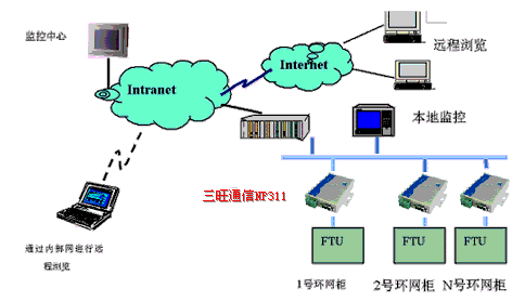 [在配網自動化中RTU/FTU/TTU之間的通訊連接正在從傳統的串行通訊、無線通訊和電力線通訊向以太網方向轉變。對于電力系統配網自動化來說,以太網的通訊介質最常用的是光纖,與辦公環境經常采用的雙絞線相比,采用光纖可以實現長距離通訊和高的抗電磁干擾能力。 通訊采用以太網,但是大量的RTU/FTU/TTU設備仍然只有串口進行通訊,如何將這些串口設備連接到網絡上呢?如何保護電力企業已經在這些設備上投入的大量資金呢?顯然,完全換掉這些串口通訊的智能設備是既不經濟也不可行的。針對這些電力配網自動化的實際需求,采用串口設備聯網服務器就是解決這些問題的最佳解決方案。 三旺通信串口設備聯網解決方案: 對于現有的環網柜、無功補償裝置、抄表裝置等大量帶有RS-232通訊口的設備,可以通過三旺通信串口服務器 NP311(1個RS-232/422/485串口設備聯網服務器)將這些設備組成以太網(多為光纖以太網),在此系統中,儀器與Intranet/Internet是通過NP311連接起來的。這種Intranet/Internet的連接可以通過標準的以太網線,一個調制解調器/電話線,或無線modem(如CDPD)來實現。現在,通過這種連接,就可以使裝有應用軟件的遠程系統通過標準網絡訪問現場設備。 利用Intranet/Internet的連接,一臺具有瀏覽功能的PC(可以是臺式電腦,PDA或瘦客戶機)就可以遠程訪問在串口設備聯網服務器及所連接的環網柜、無功補償裝置、抄表裝置等各種設備了,既可直接來進行數據監控,也可以給現場的設備發送控制數據。 采用三旺通信串口設備聯網解決方案,使得在電力配網自動化中采用以太網絡通訊成為現實。簡單框圖如下: