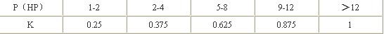 由上表可知:水泵功率為4HP時,K=0.375