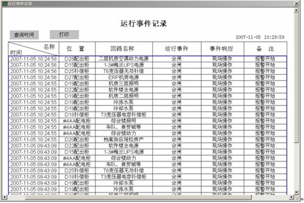 系統(tǒng)對所有用戶操作、開關(guān)變位、參量越限及其它用戶實(shí)際需求的事件均具有詳細(xì)的記錄功能,包括事件發(fā)生的時間位置,當(dāng)前值班人員事件是否確認(rèn)等信息,對開關(guān)變位、參量越限等信息還具有聲音報警功能,同時自動對運(yùn)行設(shè)備發(fā)送控制指令或提示值班人員迅速排除故障。