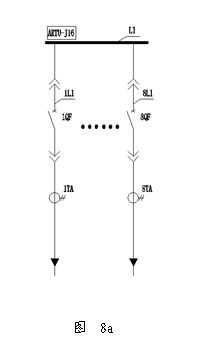 以某配電系統(tǒng)為例,1臺(tái)ARTU-J16控制8路低壓饋線,CM1斷路器配電動(dòng)機(jī)操作機(jī)構(gòu),一次方案見(jiàn)圖8(a),控制方式見(jiàn)圖8(b)。啟停按鈕現(xiàn)場(chǎng)手動(dòng)控制各回路斷路器的合、分閘,遙控單元通過(guò)通訊接口集中控制8路斷路器的工作狀態(tài),實(shí)現(xiàn)斷路器就地與遠(yuǎn)程兩地控制的工作模式。
