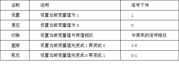 這里面可以連接一個(gè)離散類型的變量,但是只可以做設(shè)置、復(fù)位、切換、三種有效狀態(tài),根本沒有彈簧按鈕的效果。