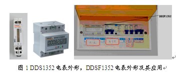 DDSF1352單相電表,又稱為ADL100,同樣為DIN35mm導軌安裝,寬度為4個模數,一次最大接入單相電流為80A,精度1.0級,可測量電壓、電流,具有峰、平、谷電能分時復費率計量功能,帶RS485接口,Modbus通訊協議或DL/T645規約,可組網。主要應用于對單相電能的計量,常用在配電箱內。DDS1352及DDSF1352單相電表外形及應用如圖1所示: