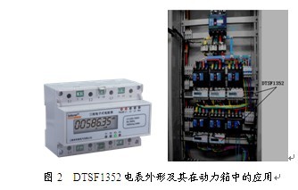 采用DTSF1352三相四線電表(見圖2),又稱ADL300,用于三相電能計量,具有尖、峰、平、谷電能分時復費率計量功能,DIN35mm導軌安裝,寬度為7個模數,可安裝在照明箱或動力箱中,一次最大接入三相電流80A,80A以上可經電流互感器二次接入,精度0.5級,帶RS485接口,Modbus通訊協議或DL/T645通訊規約,可組網[1]。