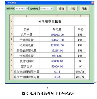(3)對建筑物內所有設備的用電量進行記錄與統計,包括動力用電、照明與插座用電、空調用電、特殊用電等,并可生成各種報表及分析曲線等供用戶查詢使用。