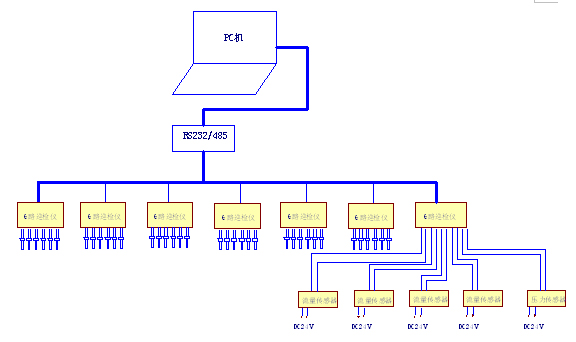 | 整個空調數據采集、監控系統由一臺上位PC機、1個宇電RS232/RS485轉換器、7臺AI人工智能高精度6路巡檢儀、37個鉑熱電阻Pt100、4個流量傳感器及一個壓差變送器組成。利用具有通訊功能的AI-706M6路巡檢儀對現場數據進行采集,測量精度為0.2級。在巡檢儀上可直接顯示采集的數據,并通過RS-485串行通訊和上位機進行通訊,實現37個通道溫度、4個通道流量及1個通道壓差的集中監控。AI調節器上的所有參數可以在上位機中顯示,也可用上位機設定下載。 |