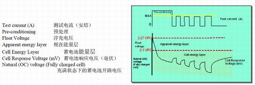 在實際應用中,充電機的正確工作不能等同于每個單電池的工作狀態正常,并且蓄電池的端電壓并不能真實地反映蓄電池的容量特性,對于容量嚴重下降的蓄電池,其浮充電壓的區別不足以用來判斷蓄電池是否因容量降低而失效。實際上只有通過定期對電池組放電,才能了解蓄電池的容量狀態,但此時發現的落后蓄電池早已進入壽命后期,只能給用戶提供一個滯后的信息,而蓄電池組已經起不到備份作用了。