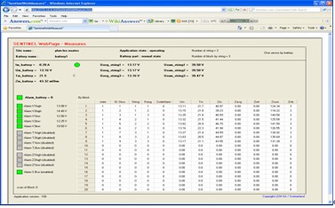 通訊功能:通過串行總線實現Sentinel 和控制器之間的通訊。每個控制器最多可接254個Sentinel, 每個Sentinel擁有唯一的地址(ID),通訊方式靈活,控制器可以直接與PC連接,也可以通過以太網或局域網通訊,Webserver功能,可以讓用戶隨時隨地了解蓄電池的狀態。