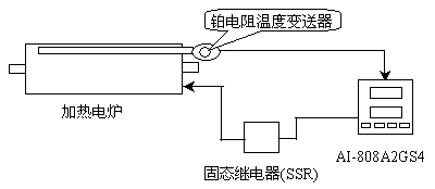 2. 溫度控制 與鉑電阻溫度變送器、固態繼電器(SSR)組成加熱爐的溫度控制。如圖2所示。 |