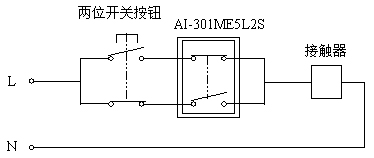 5. AI-301ME5用于開關控制 與兩位按鈕開關、接觸器組成門電路,實現了在實驗現場和計算機上均可啟停設備的功能。如圖5所示。