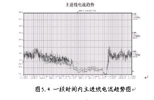整個(gè)系統(tǒng)運(yùn)行良好,已經(jīng)在現(xiàn)場(chǎng)運(yùn)行了一段時(shí)間。圖5.4為一段時(shí)間內(nèi)主進(jìn)線電流趨勢(shì)圖,它實(shí)時(shí)反映了工廠這段時(shí)間內(nèi)的電流情況,從而反映整個(gè)廠區(qū)的負(fù)荷情況。