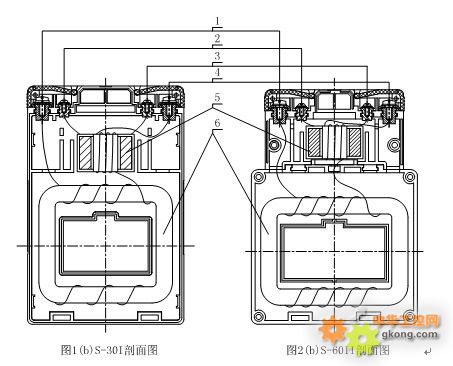 摘要 對饋線眾多的低壓配電線路,目前主要有以下方法來實現系統監測:1.采用電流互感器接多功能電力監控儀加485通訊表實現多路系統監測;2采用電流互感器接變送器來實現;、使用上述兩種方案成本高、投資大。本文介紹一種低壓雙繞組電流互感器,它與ARTU-M32配合使用可以,實現對眾多終端配電線路進行遙測的智能配電方案。該方案具有成本低、投資少、安裝接線簡便等優點,有利于低壓智能配電的進一步推廣和應用。 關鍵詞 低壓雙繞組 電流互感器 工作原理應用 1引言 低壓電流互感器具有體積小、質量輕、準確度高、容量大、安裝方便等特點,且測量范圍比較大,二次輸出信號5A或1A,但對于遠程傳輸和系統監控采集就沒有辦法來實現信息傳遞,必須通過變送器或電力儀表。針對市場需求,我公司開發出AKH-0.66S系列雙繞組電流互感器,一次電流測量范圍5-6300A,二次有兩組輸出,一組輸出5A或1A,另一組輸出0-20mA,且一次電流可過載8-10倍,可直接用于系統采集和遠傳,與ARTU-M32配套使用,可簡化系統結構,降低成本,提高系統可靠性. 2產品設計 2.1結構特點 本產品結構新穎,外形美觀大方,透明翻蓋設計有防竊電裝置,接線方便。互感器外殼材料采用PC/ABS合金,該材料具有耐高溫、機械強度高、環保等特點;如圖1(b)、圖2(b)所示,主繞組(6)鐵芯采用有取向冷扎硅鋼片,如圖圖1(b)、圖2(b)所示,副繞組(5)鐵芯采用坡莫合金,該材料具有性能穩定,機械強度高,導磁率極高等特點;漆包線采用高強度漆包線,該材料具有絕緣強度高,耐溫性強等特點。 雙繞組電流互感器是在傳統低壓母線式電流互感器的基礎上進行研發,兼容電纜和銅排安裝方式,根據一次電流的測量范圍,5A-1250A采用一體式設計方案,主要規格有S-30I、S-40I、S-50II;1250A-6300A采用分體式結構設計,主要規格有S-60II、S-80II、S-100II、S-120II、S-200II為分體式,如圖1(a)、圖2(a)所示。