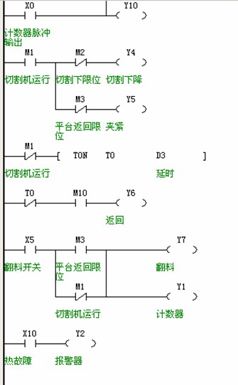 該切管機主要用于電熱管行業的各種管材切割切斷加工,比如切割鋼管、鋁管、鐵管等。該控制系統原來采用繼電器、行程開關控制,產量低,不能自動自動送料、自動加緊、自動切割。