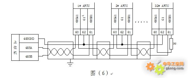當多個ARTU組網使用時,最后一個的RS485的A和B端子上應并接入一個終端匹配電阻R,以保證通訊阻抗匹配,終端匹配電阻一般在120Ω-10kΩ之間,布線不同終端匹配電阻可能會不同。正確接入RS485總線,并連接至上位機。上位機根據模塊的站號和波特率,按規約格式下發命令。此時模塊的通信指示燈閃爍,表明模塊已收到上位機命令并應答,即通訊已經建立,見圖6。