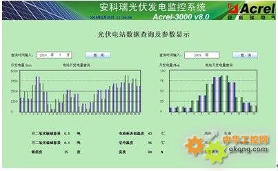 監(jiān)控系統(tǒng)對光伏發(fā)電的發(fā)電量可形成月棒圖及年度棒圖顯示,并折算成二氧化碳、二氧化硫減排量值;并可查看太陽輻射強度趨勢曲線、風速變化趨勢曲線顯示
