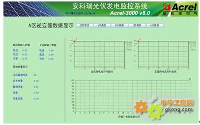 Acrel-3000 V8.0光伏發(fā)電監(jiān)測系統(tǒng)是上海安科瑞電氣股份有限公司針對太陽能發(fā)電系統(tǒng)開發(fā)的軟件平臺,可對太陽能光伏電站里的電池陣列、匯流箱、逆變器、交直流配電柜、太陽跟蹤控制系統(tǒng)等設備進行實時監(jiān)測和控制,通過各種樣式的圖表及數(shù)據(jù)快速掌握電站的運行情況,其友好的用戶界面、強大的分析功能、完善的故障報警確保了太陽能光伏發(fā)電系統(tǒng)的完全可靠和穩(wěn)定運行。